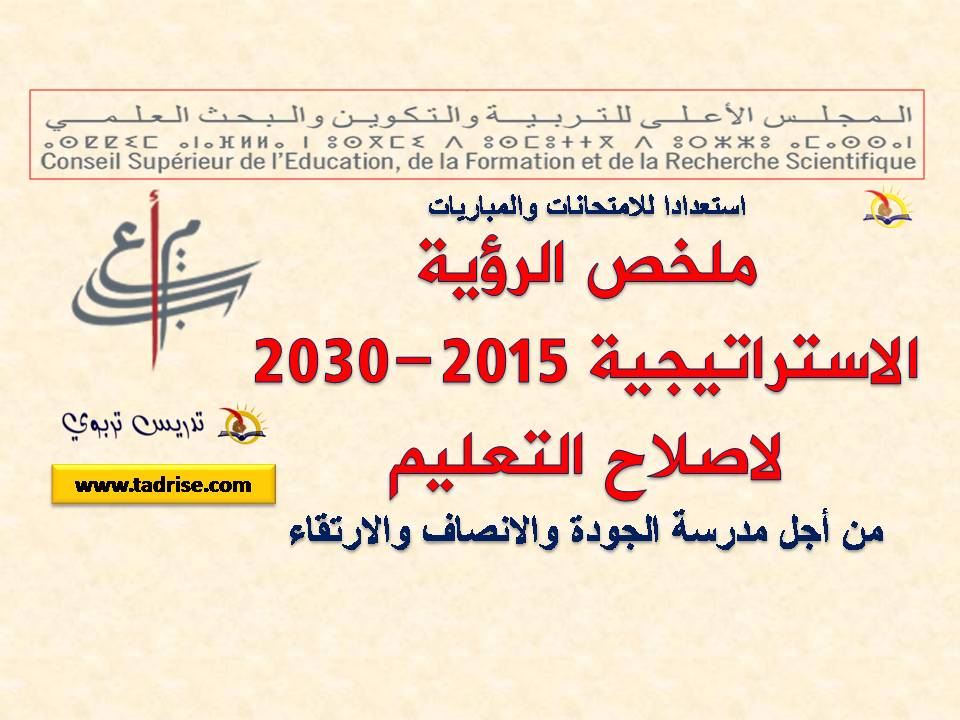 ملخص الرؤية الاستراتيجية 2015 2030 لاصلاح التعليم تدريس تربوي
