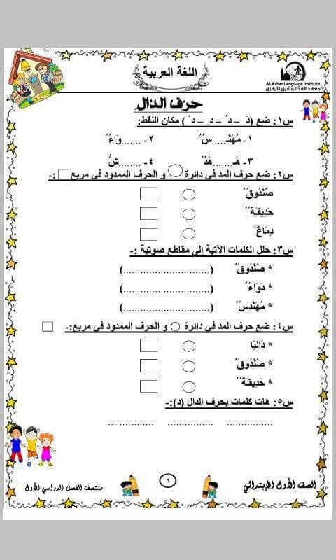 الصف الأول الفصل الأول لغة عربية أوراق عمل الحروف نماذج امتحانية 2016 2017 Apprendre L Arabe Langue Arabe Apprentissage