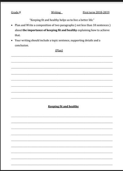مواضيع تعبير انجليزي الصف الثامن الفصل الثاني 2019 مدرستي الكويتية